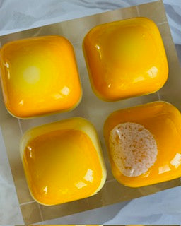 A beautifully smooth, hand crafted milk chocolate bonbon filled with a white chocolate ganache bursting with tropical flavors from pure passion fruit pulp.